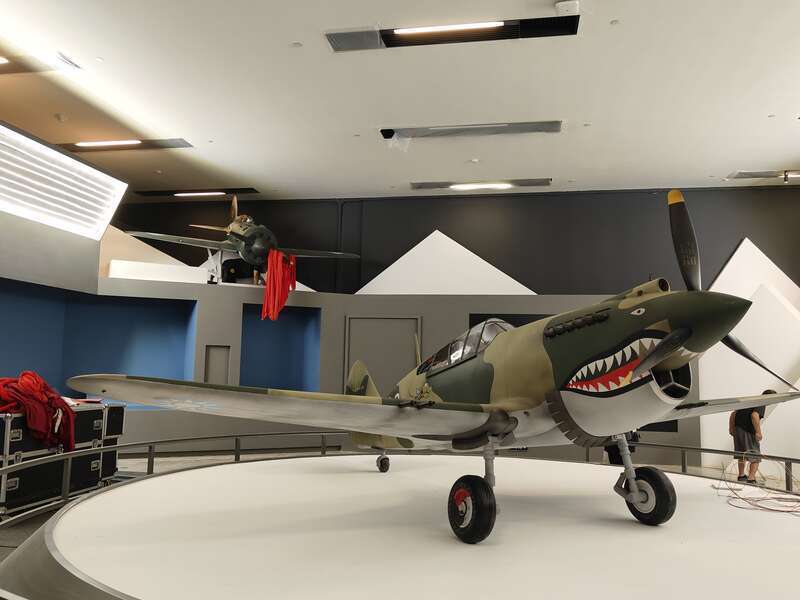 策展团队介绍,本次“国际友人与中国抗战——纪念中国人民抗日战争暨世界反法西斯战争胜利80周年”专题展的策展中使用了大量多媒体技术,打造沉浸式体验,如“报道·发声”单元中,展览设置了破损的街巷墙壁和弹孔、弹痕,使参观者如同战地记者身临其境,直面战争惨烈;“军事·战斗”单元中,布置了1:2制作的参与过战斗的飞机模型伊-16与P40,将场景复原驼峰航线、苏联援华航线。